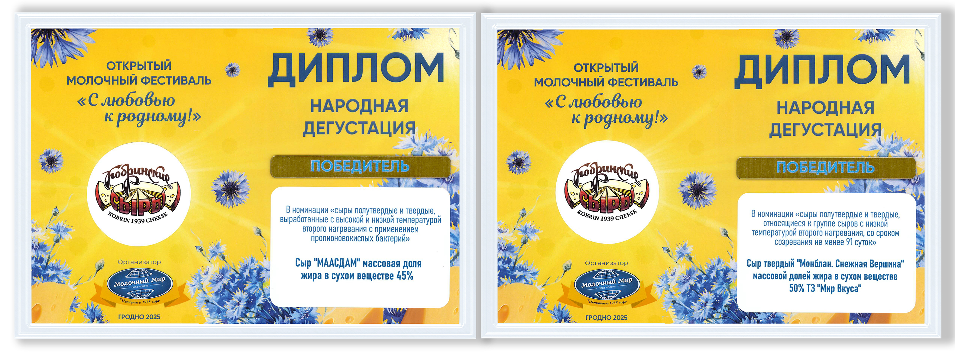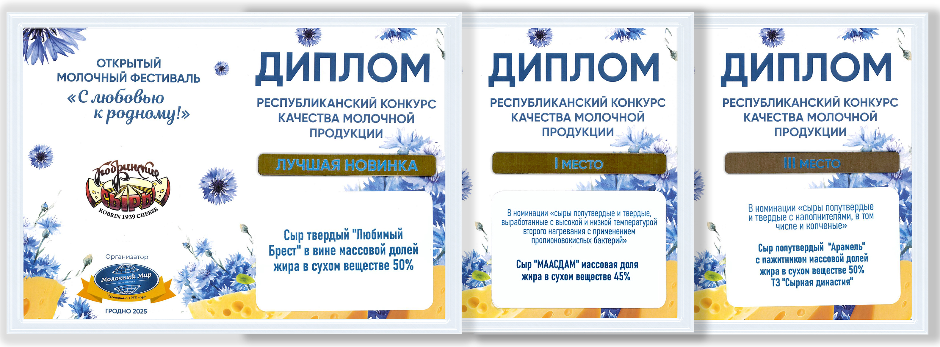 从9月4日至9月6日,第十二届开放牛奶节在格罗德诺举行,口号是"与爱的土着人"。30多家白俄罗斯企业参加了质量竞赛,在13项提名中提供了114个产品样品。 JSC Kobrin MSZ的奶酪由专家评审团颁发,并颁发: