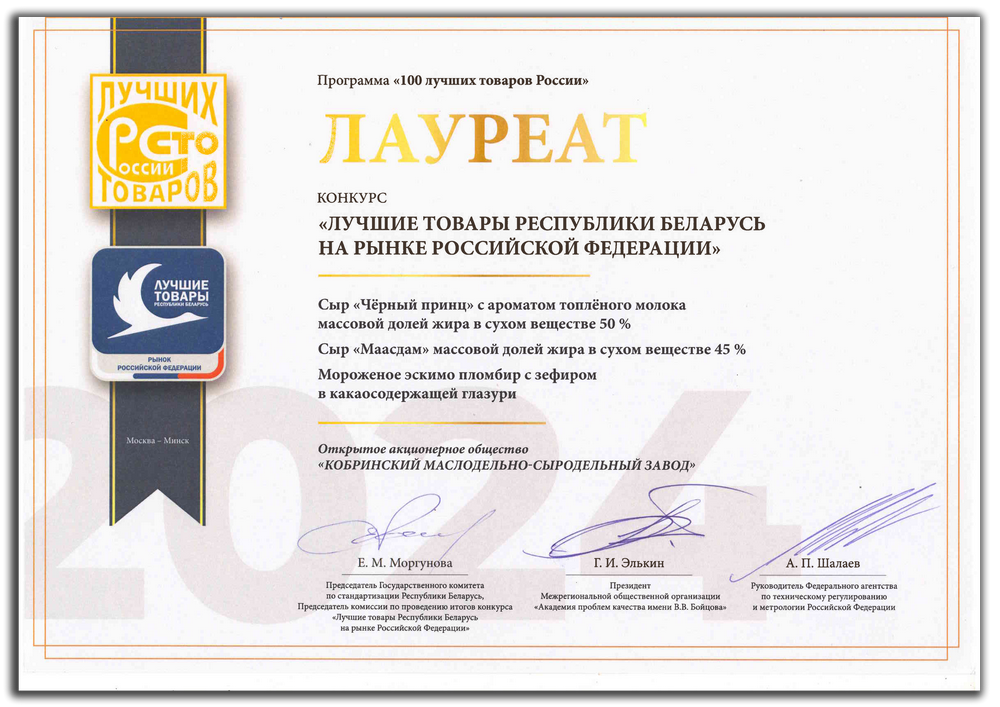 科林黄油和奶酪工厂再次成为比赛的赢家 "俄罗斯联邦市场上白俄罗斯共和国最好的商品"! 该竞赛每年在区域间公共组织"质量问题学院"的"俄罗斯100最佳商品"计划框架内举行。 其主要目标是支持白俄罗斯制造商生产具有竞争力的商品,增加其出口机会和在俄罗斯市场的形象。 "白俄罗斯共和国在俄罗斯联邦市场上最好的商品"的称号被授予: *奶酪"黑王子"与融化牛奶的香气50%; *含有丙酸菌的奶酪"Maasdam"45%; *冰棒冰淇淋"圣代棉花糖"含可可釉。