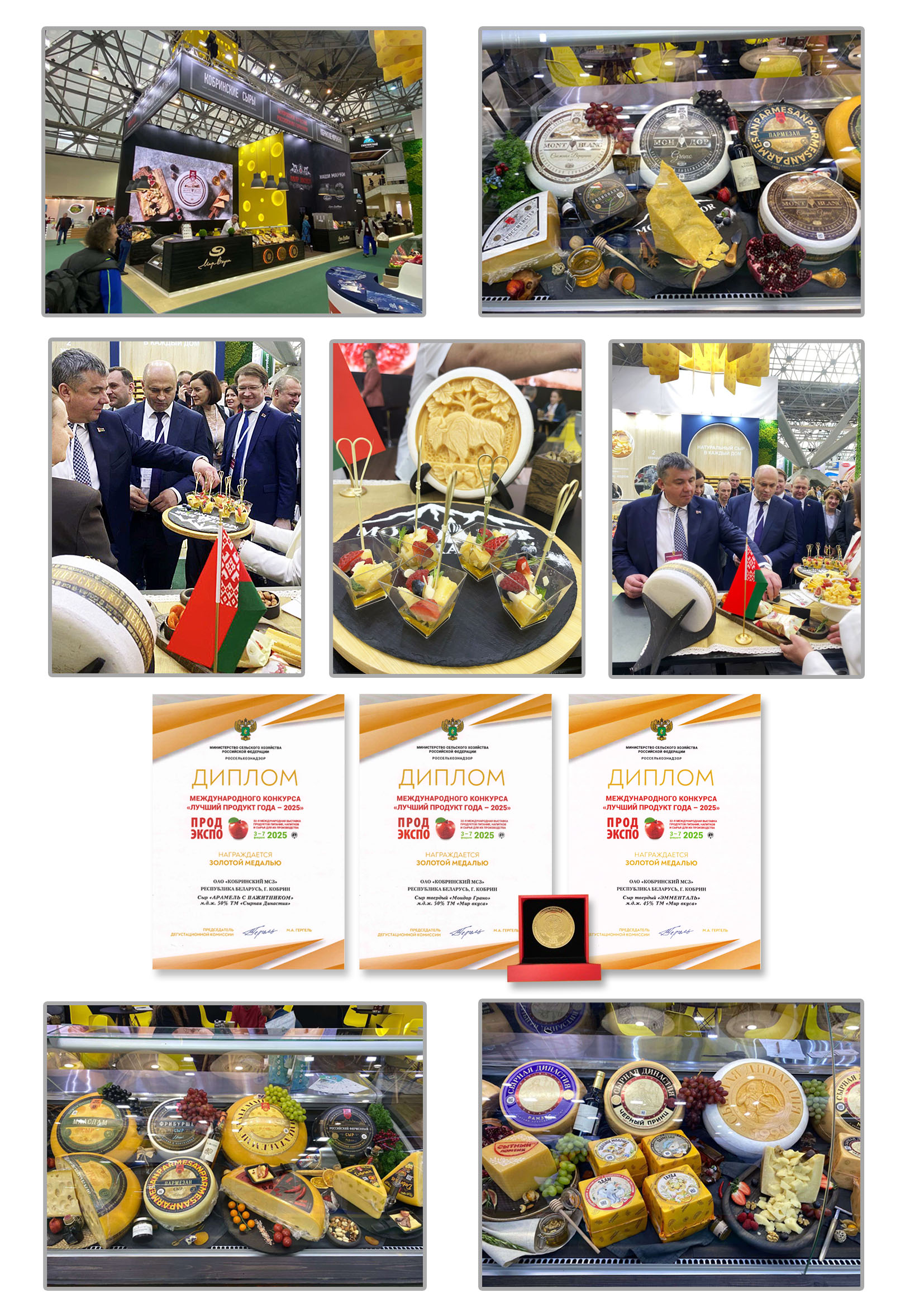 科布林黄油和奶酪工厂在莫斯科举行的国际食品展览会PRODEXPO-2025上获得了"最佳产品-2025"比赛的金牌:对于超硬奶酪Mondor GRANO,带有丙酸细菌Emmental的奶酪和"焦糖和胡芦巴" 秉承"永远是最好的!",科林乳品和奶酪厂仍然是白俄罗斯共和国奶酪质量的领头羊。