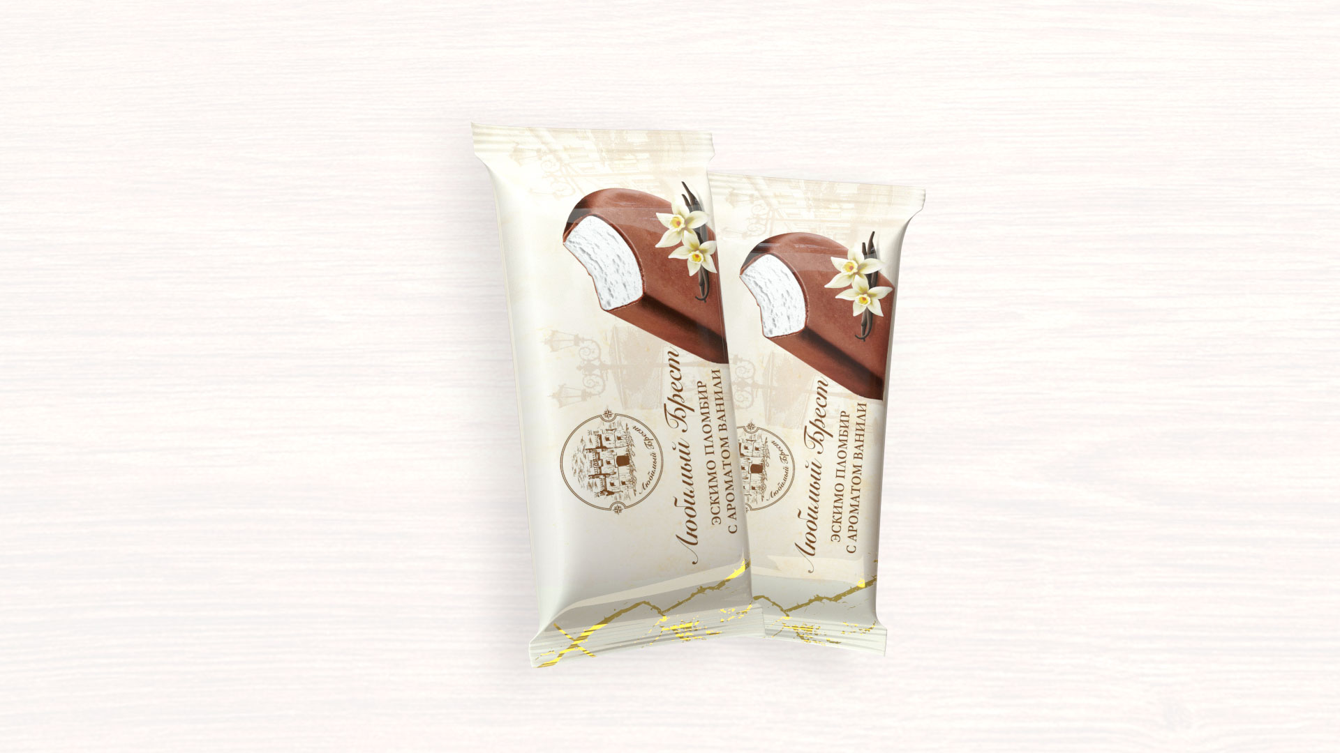 LYUBIMIY BREST冰淇淋是巧克力釉中的经典香草圣代。 冰棒是最受欢迎的冷冻甜点之一,冰淇淋的经典奶油味道包裹在融化的巧克力糖霜中。 该产品是根据全脂牛奶和奶油的传统配方制成的。