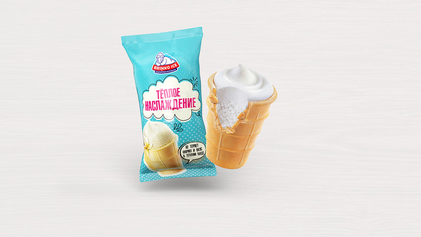 装在华夫杯子里的 “温馨的甜蜜牌”雪糕-是一种香草味的奶油雪糕,其密度让人想起众所周知的泽菲尔棉花糖。此种雪糕结合了香草的香味和黄油细腻。由于此种雪糕的加工的特点,使雪糕融化并不太容易,所以可以在融化之后食用,在室温的情况下,雪糕会保持长时间不融化。尽管如此,在融化之后,口感和优点不会损失。我们希望,家长们会为我们的创新感到高兴。妈妈们,不要担心,这种雪糕小孩子也可以吃。